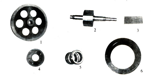 2、轉(zhuǎn)動(dòng)部分 (1)泵輪 (2)轉(zhuǎn)子軸 (3)葉片 (4)軸承 (5)雙端面機(jī)械密封 (6)靜環(huán)密封